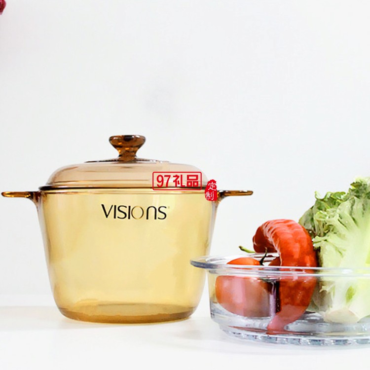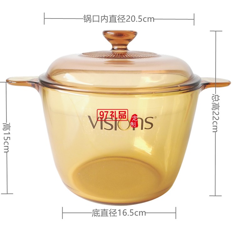 晶彩透明鍋3.5L深鍋套裝琥珀玻璃鍋燉鍋煲湯鍋定制公司廣告禮品