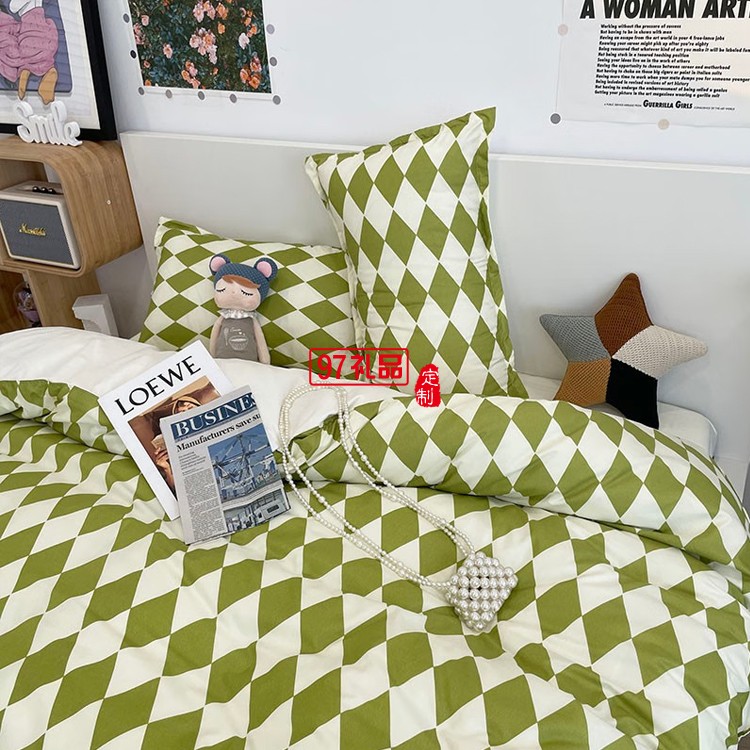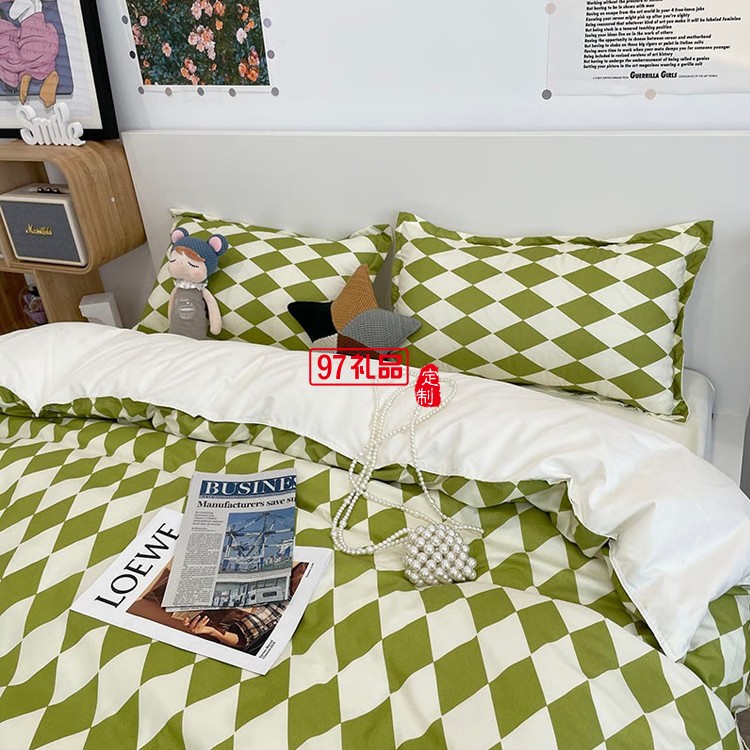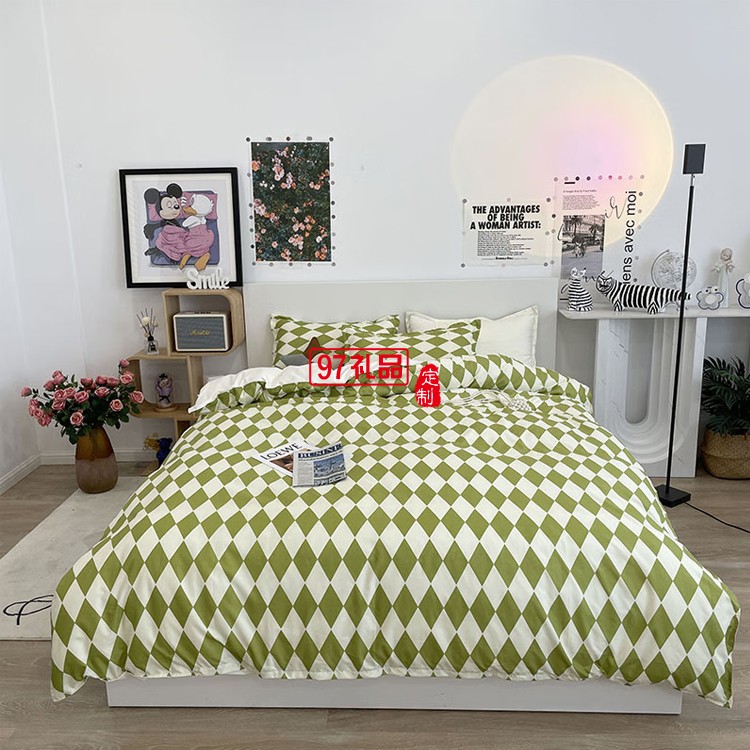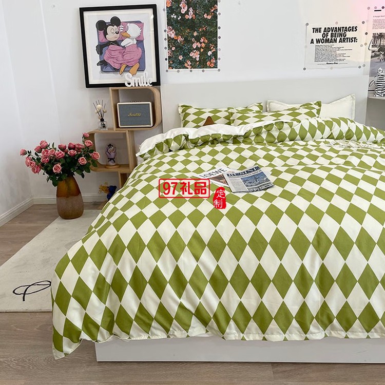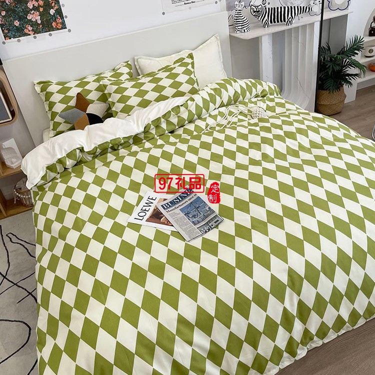 啄木鳥(niǎo) 卡膚棉四件套-抹茶菱格ZMN-KFM003定制公司廣告禮品