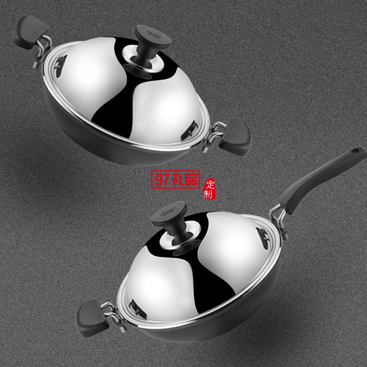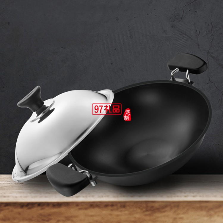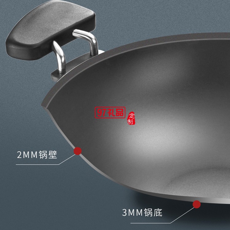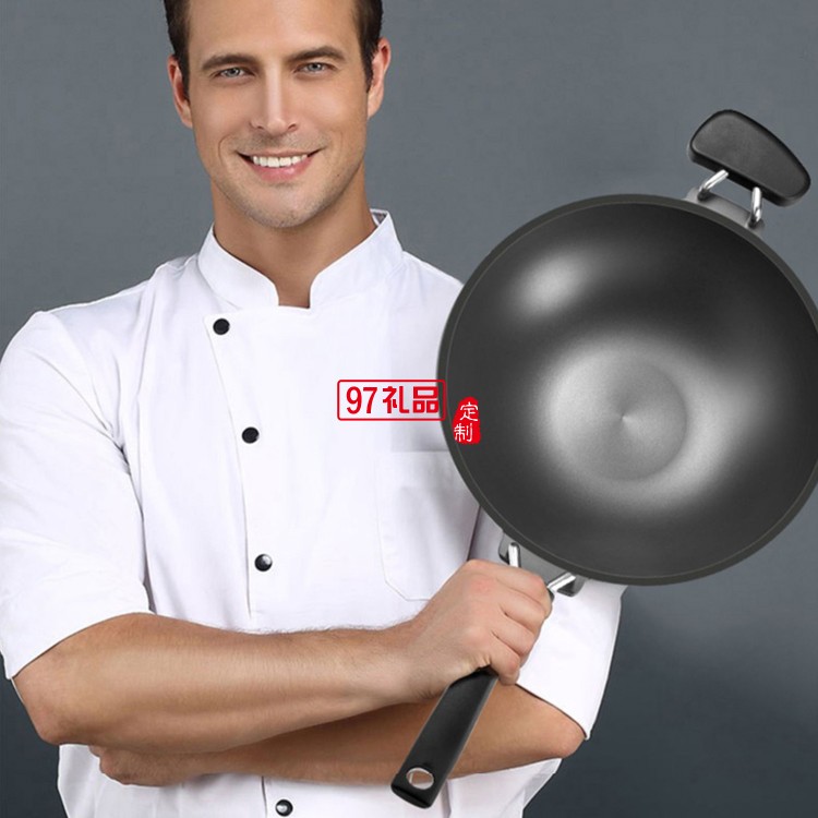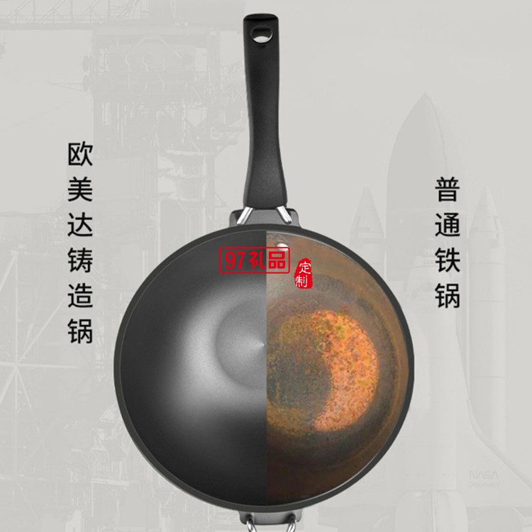 歐美達(dá)鑄造炒鍋無涂層物理不粘炒菜鍋OC7833-B定制公司廣告禮品