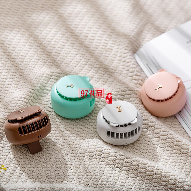新品馬卡熊靜音便捷掛脖式迷你小風扇戶外辦公可用