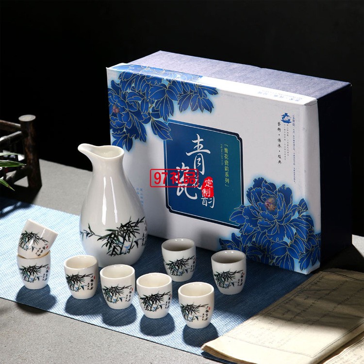 創(chuàng)意一壺8杯陶瓷酒具 中式白酒杯酒壺復(fù)古分酒器禮盒套裝logo