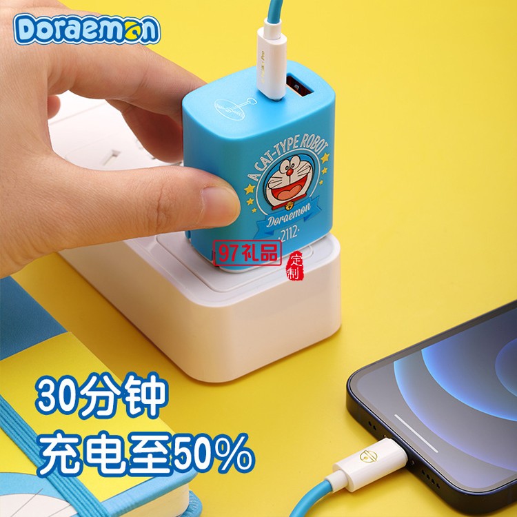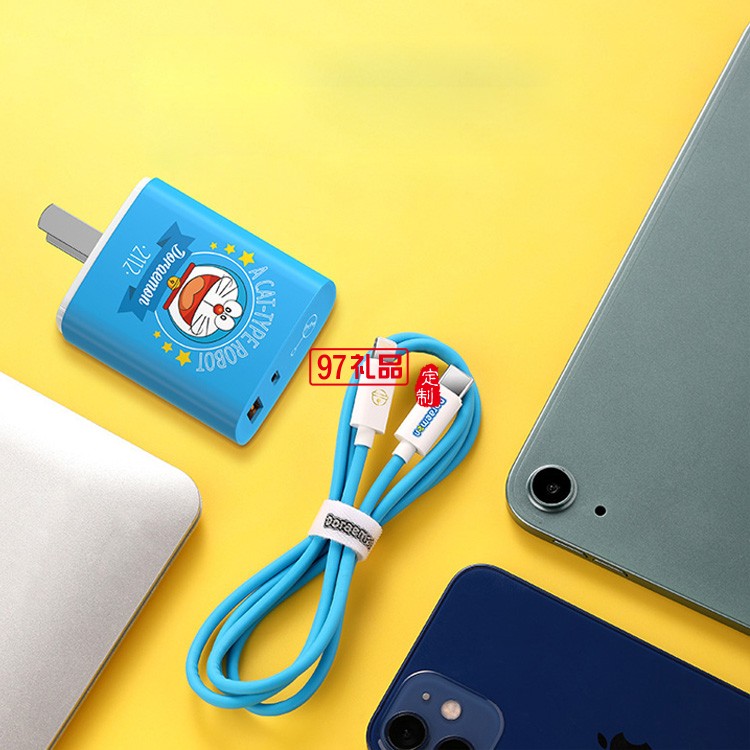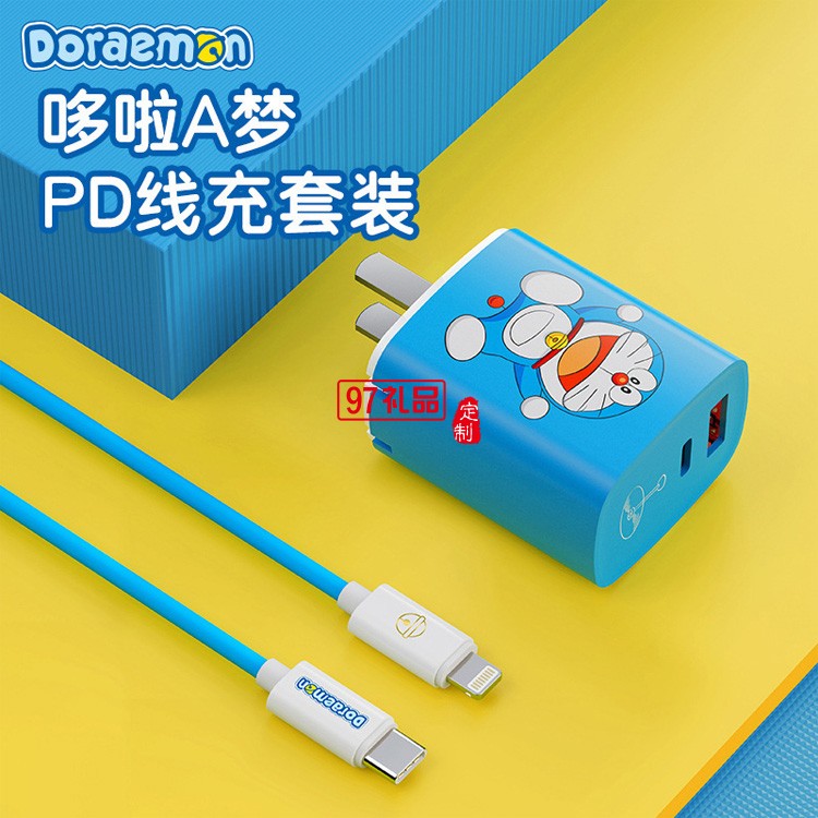 哆啦A夢 數(shù)據(jù)線+雙口20W快充充電器定制公司廣告禮品