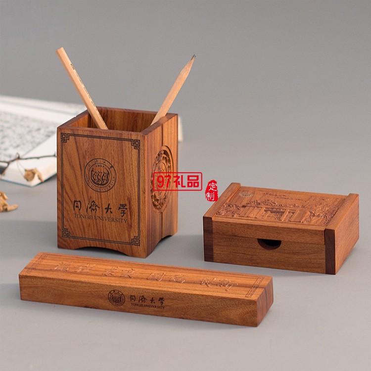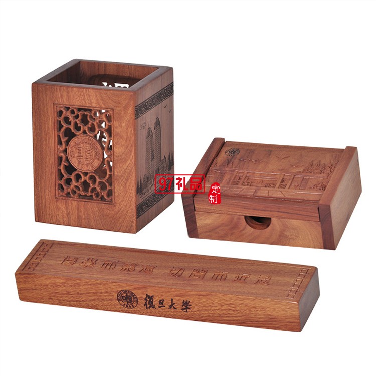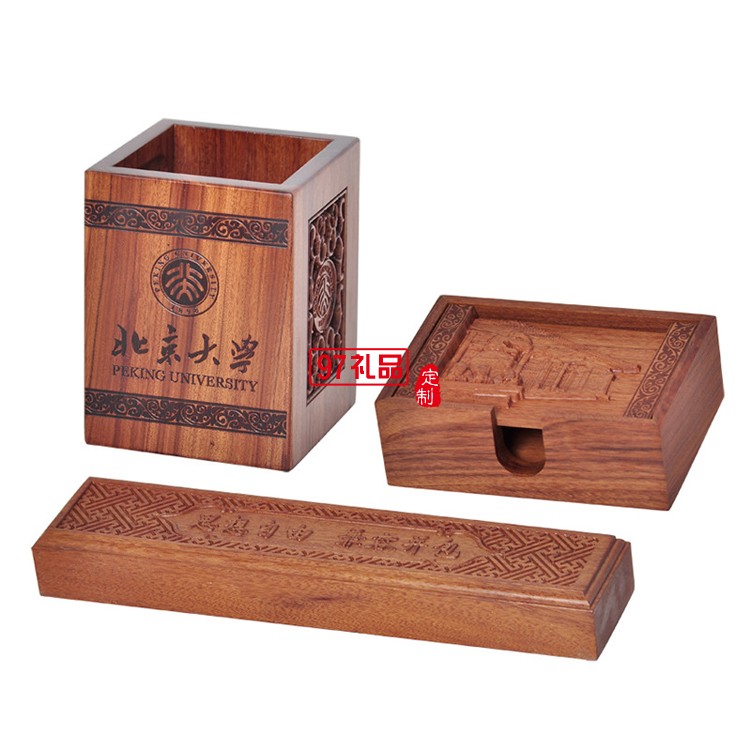 大學(xué)定制文具套裝非洲酸枝木筆筒三件套