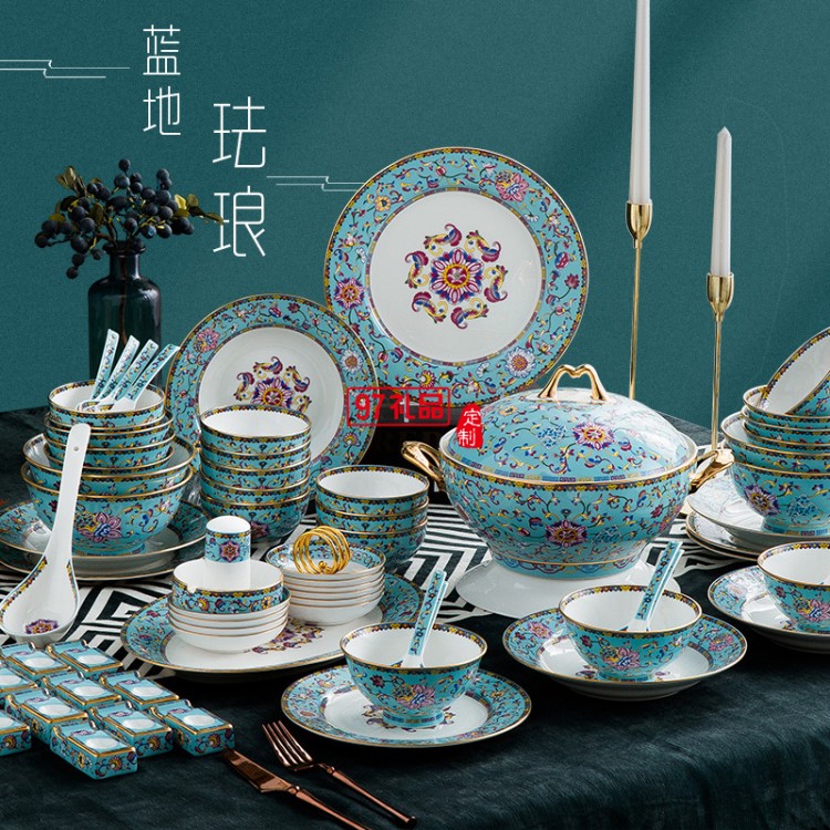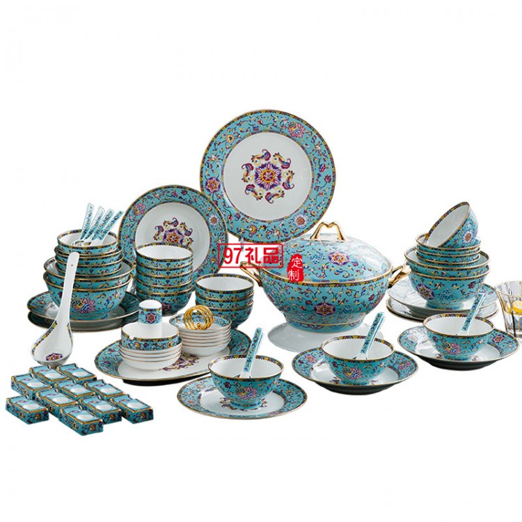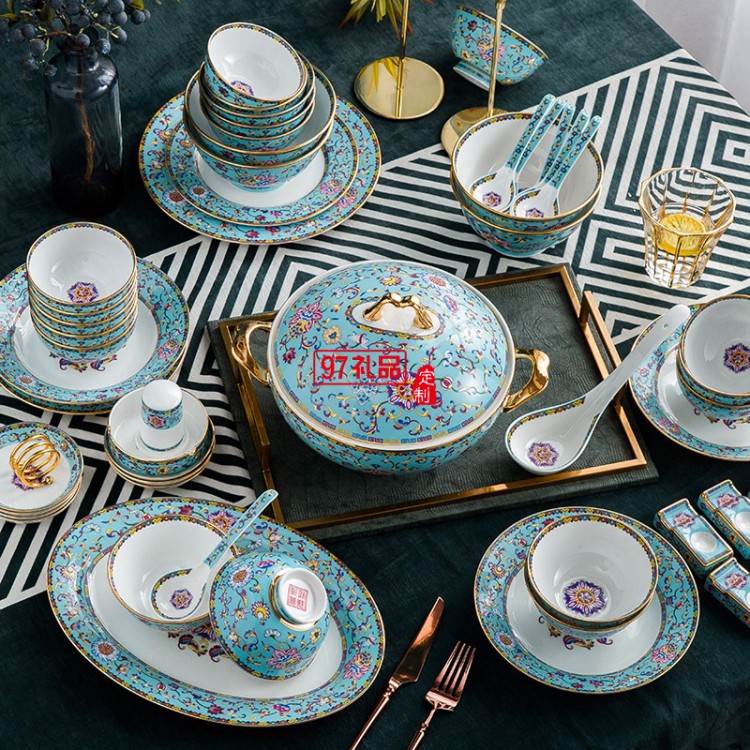 陶瓷餐具 琺瑯彩 碗碟盤套裝 景德鎮(zhèn)餐具送客戶禮品員工福利定制