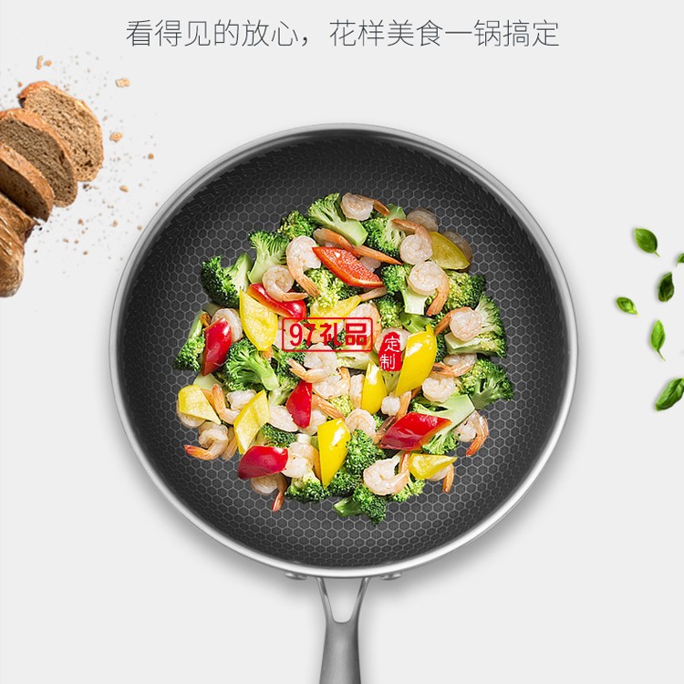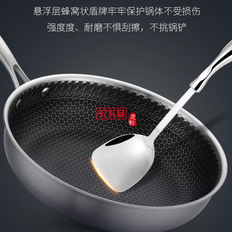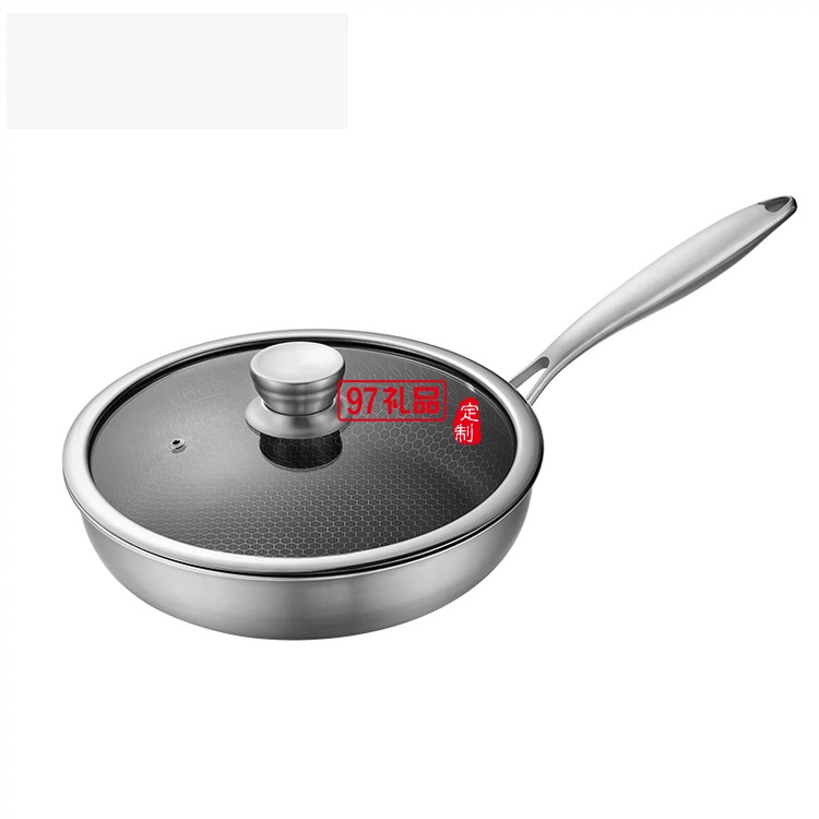歐美達(dá)不銹鋼深煎鍋煎炒兩用不粘平底鍋定制公司廣告禮品