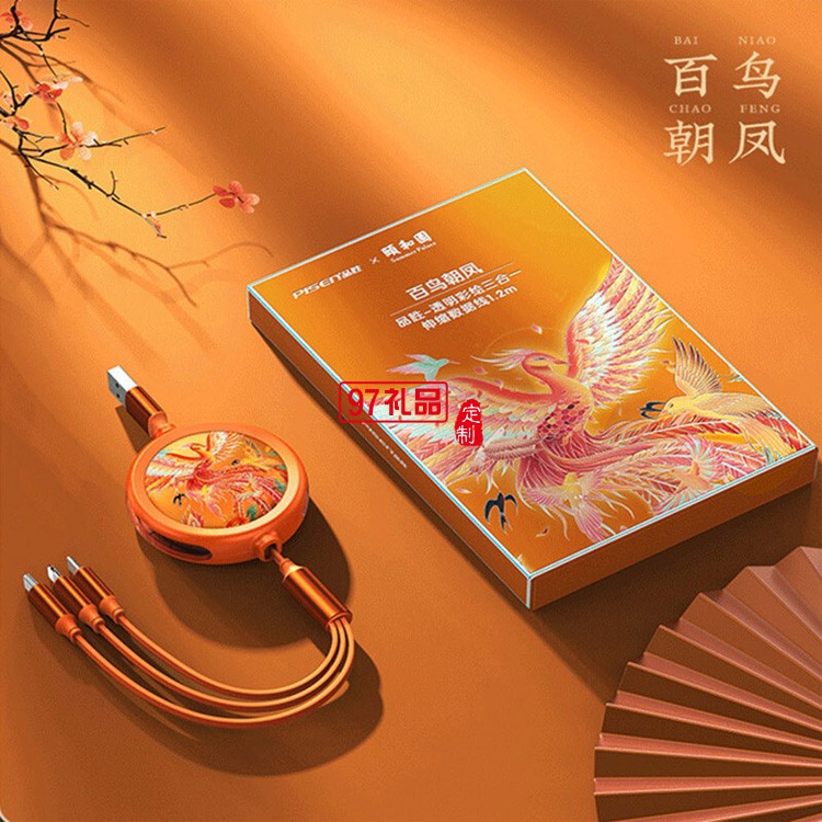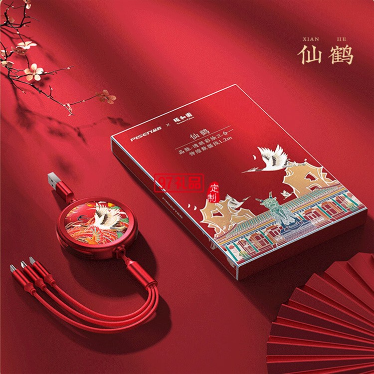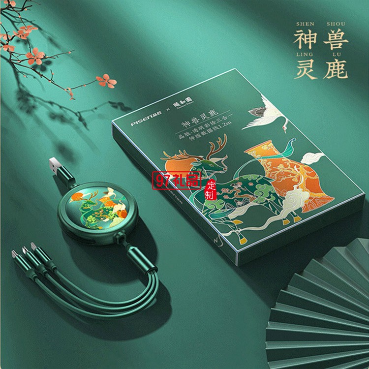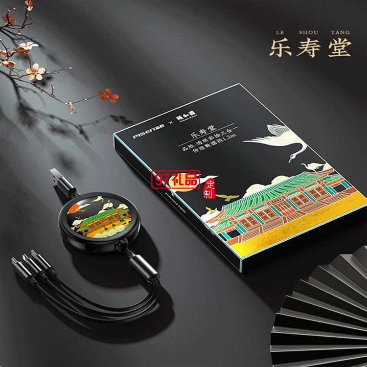 品勝頤和園一拖三數(shù)據(jù)線定制聯(lián)名款三合一伸縮收納數(shù)據(jù)線定制LOGO