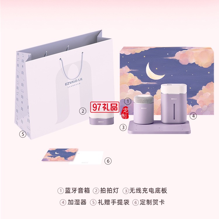 高顏值加濕器無線充小夜燈組合創(chuàng)意伴手禮定制logo高檔商務(wù)禮品