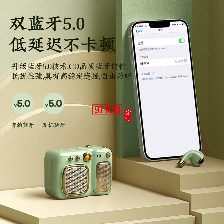 REMAX/睿量 復(fù)古藍(lán)牙音箱5.0帶耳機(jī)可充電插卡帶收音機(jī)小音響