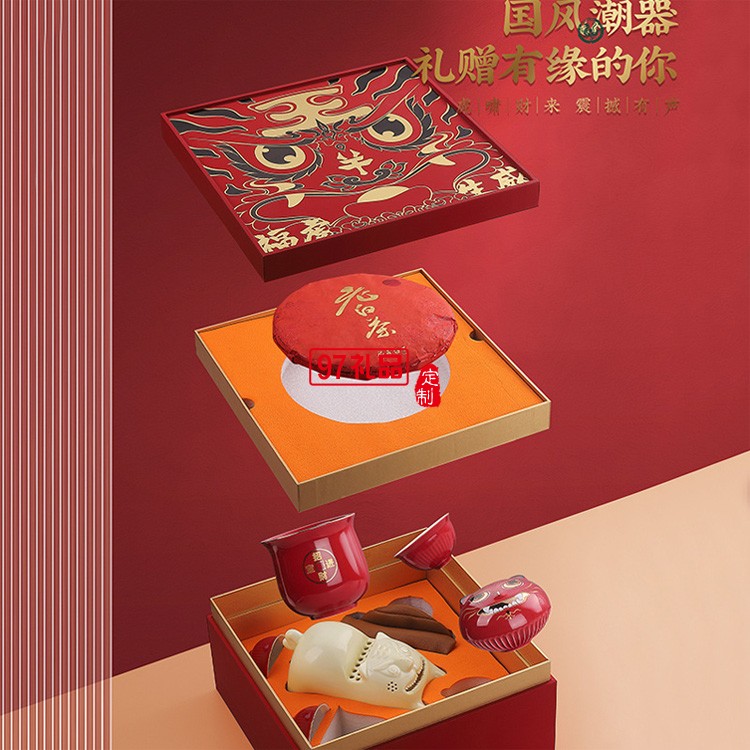 ?;⑸?chuàng)意國潮虎年新年送禮商務陶瓷旅行茶具套裝隨手禮品整套