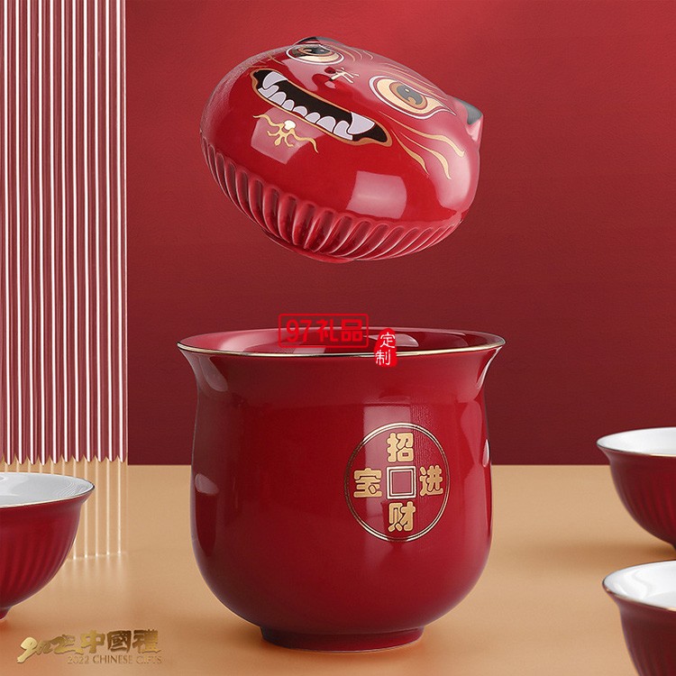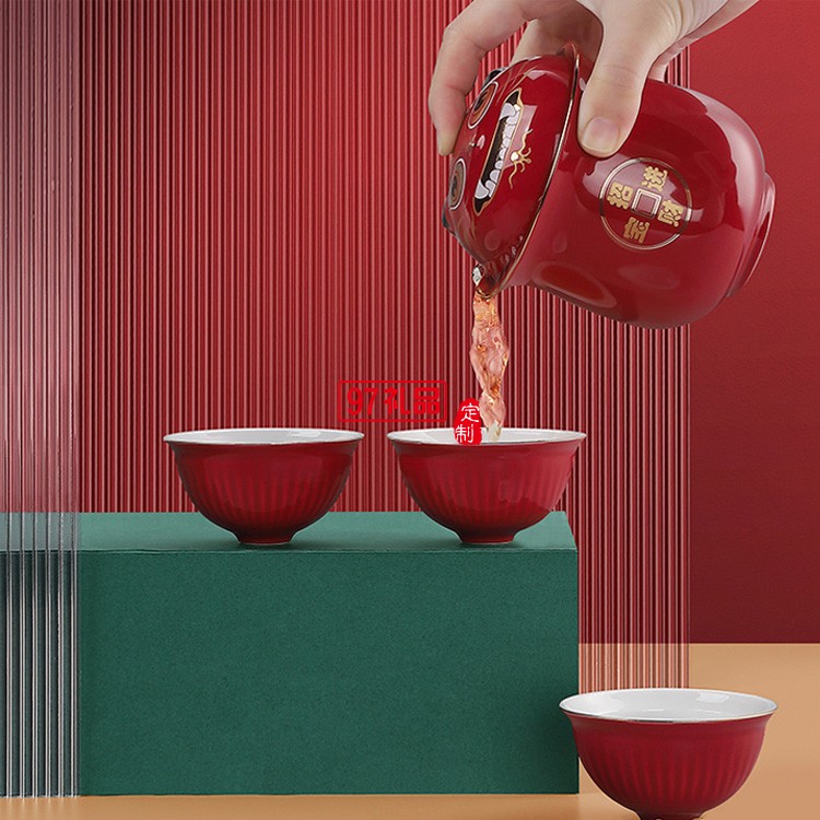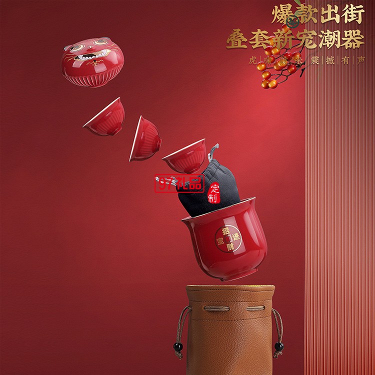 福虎生威創(chuàng)意國潮虎年新年送禮商務陶瓷旅行茶具套裝隨手禮品整套