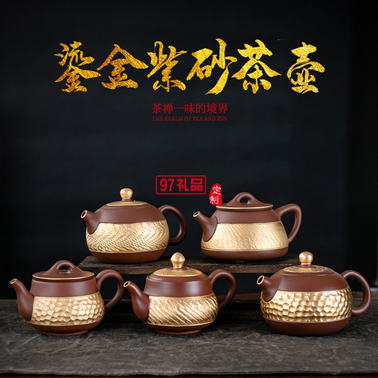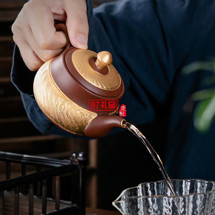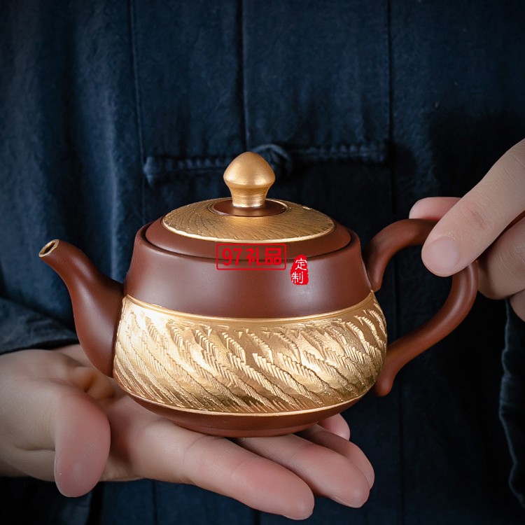 紫砂壺手工跳刀24k鎏金泡茶壺單人功夫茶具套裝大小容量仿古