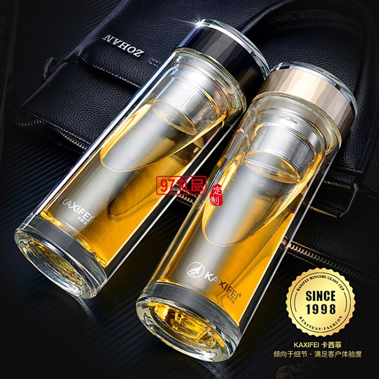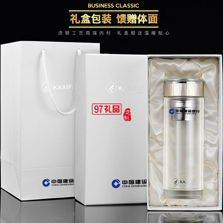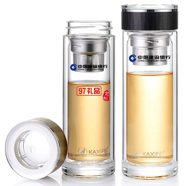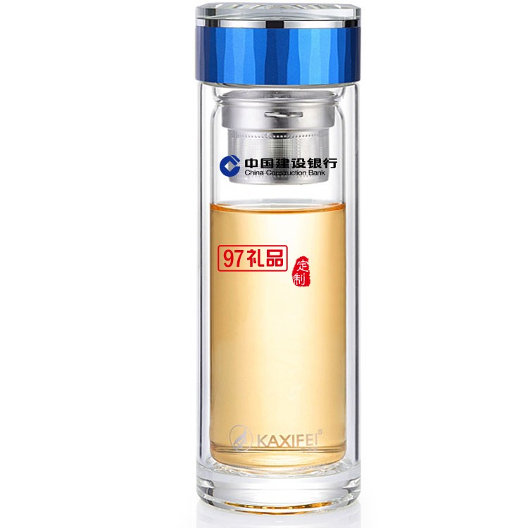 中國建設(shè)銀行定制雙層玻璃杯隔熱過濾茶杯高檔商務(wù)水晶杯