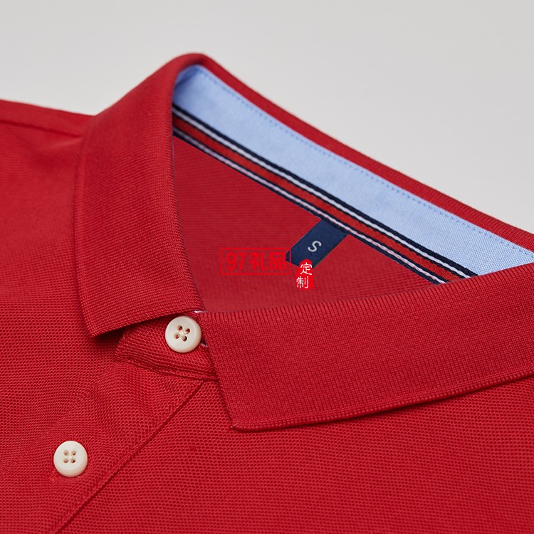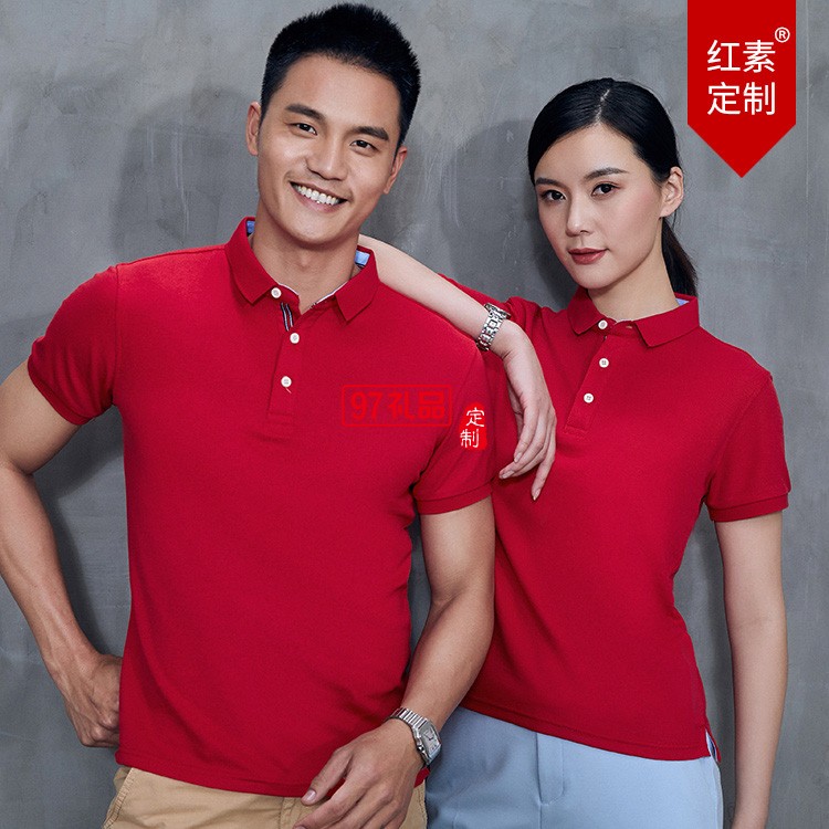 高端精梳翻領(lǐng)紅素可定制logo定制Polo衫員工服飾廣告衫