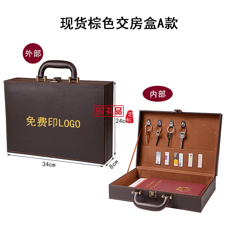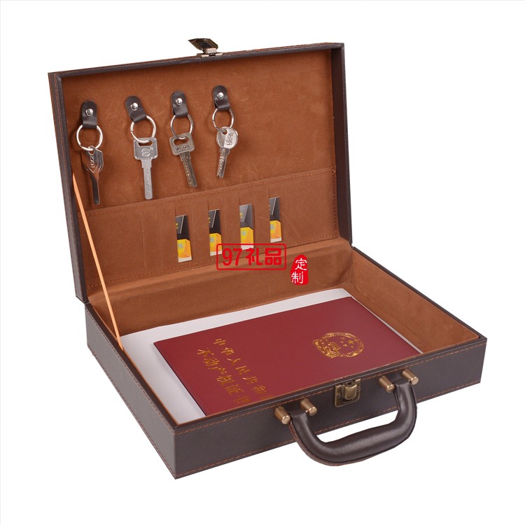 高檔皮革手提房地產(chǎn)a4合同交付鑰匙盒