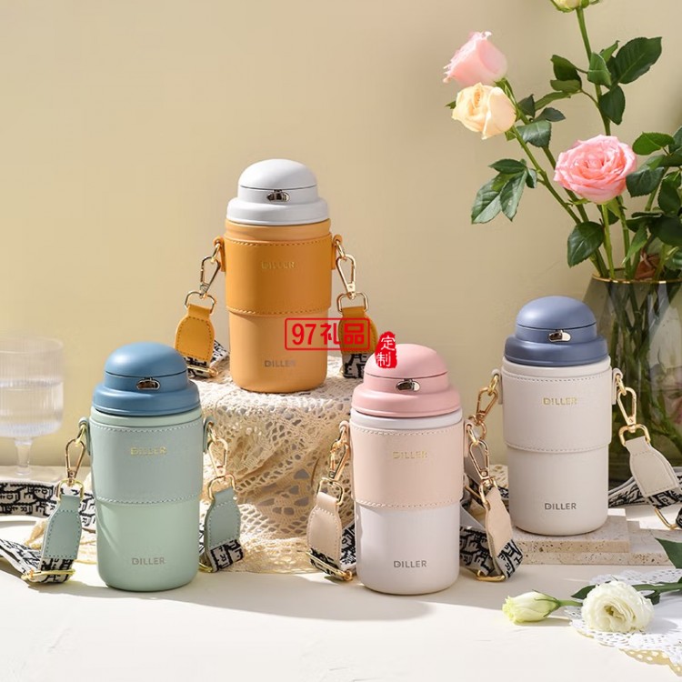 迪樂貝爾高顏值大容量帶吸管保溫水杯學(xué)生便攜隨手杯不銹鋼咖啡杯