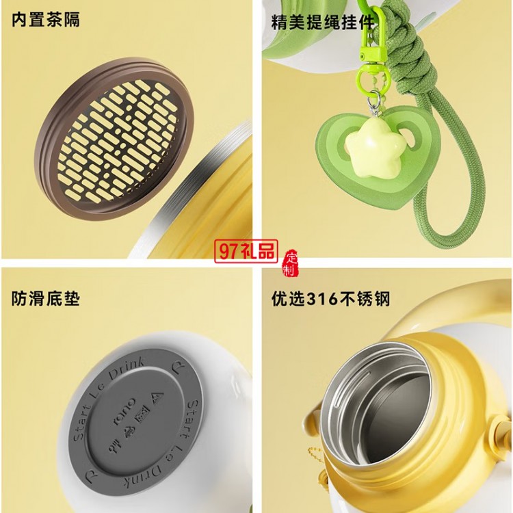 316不銹鋼,適用于各種飲料:杯蓋創(chuàng)意組合,“嘀嗒”按壓出水;7層鎖溫工藝,高效保溫6小時(shí),保冷長(zhǎng)達(dá)24小時(shí);一壺多用,適合燜泡養(yǎng)生花茶、熱咖、冷飲等飲品。