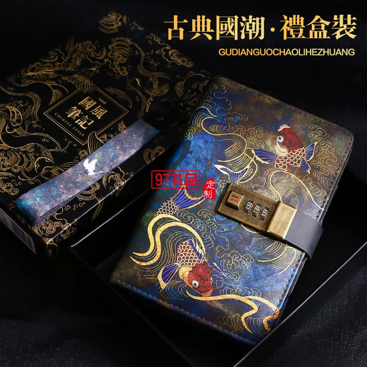 國(guó)潮活頁(yè)手帳本禮盒裝 密碼帶鎖筆記本學(xué)生日記本子