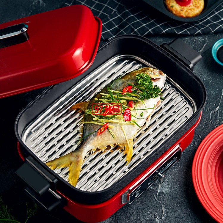 1、平板式發(fā)熱,軋花底紋不沾油烤盤,4檔火力烹飪;