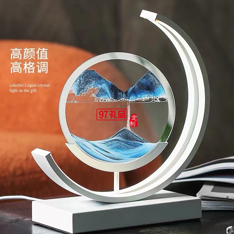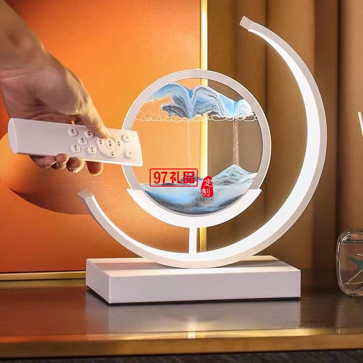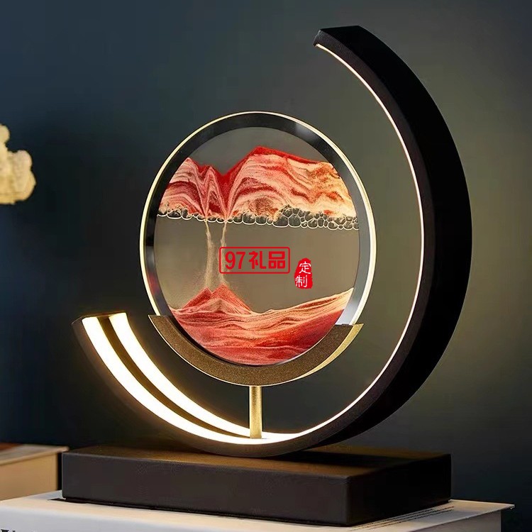 高檔沙漏擺件實木旋轉(zhuǎn)流沙畫3D客廳裝飾品擺件