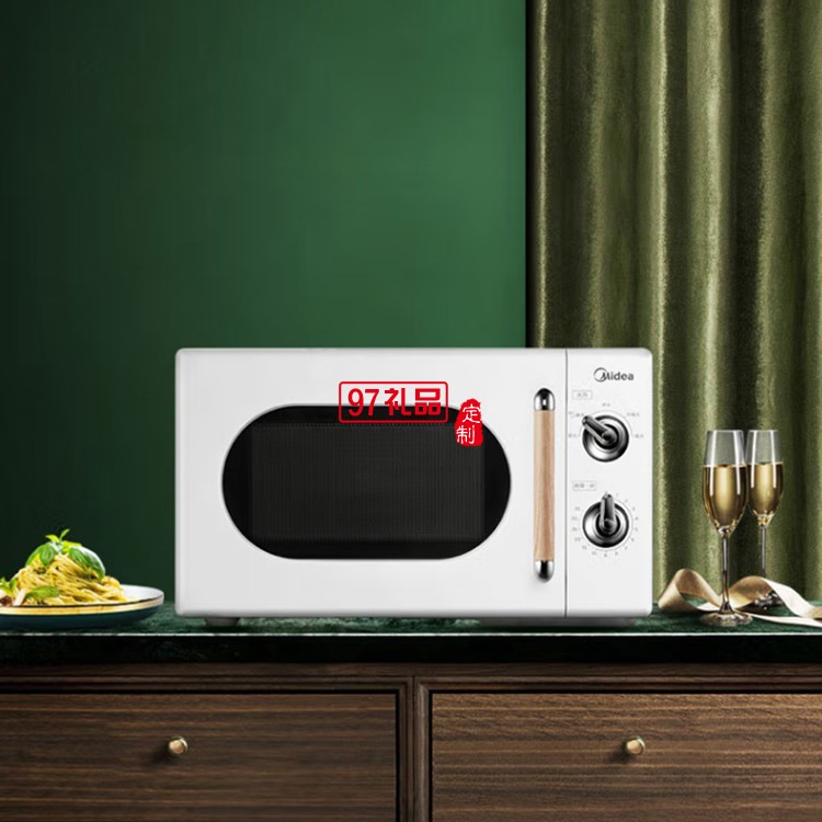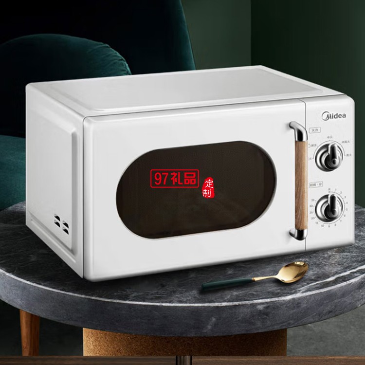 美的復古旋鈕微波爐360°轉盤式加熱20升PM2004定制公司廣告禮品