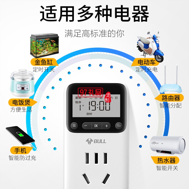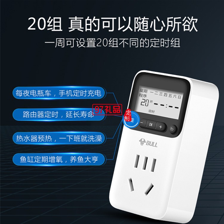 公牛定時(shí)插座10A自動(dòng)斷電電動(dòng)車定時(shí)開關(guān)GND-1定制公司廣告禮品