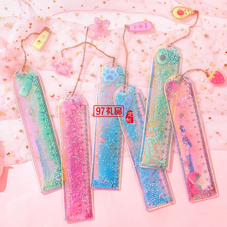 流沙書簽尺可愛(ài)鐳射少女尺子創(chuàng)意多功能學(xué)生文具刻度尺
