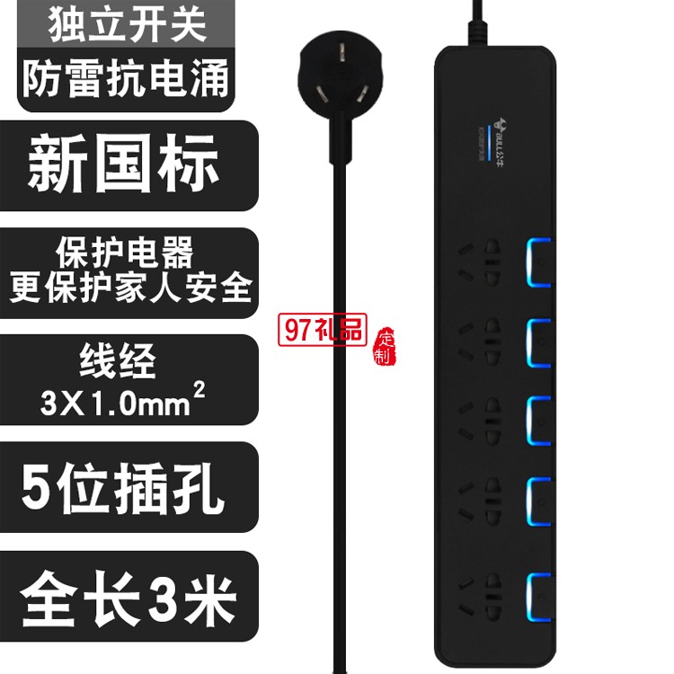 公牛插座家用接線板插線板插排插拖線板3米H3053定制公司廣告禮品