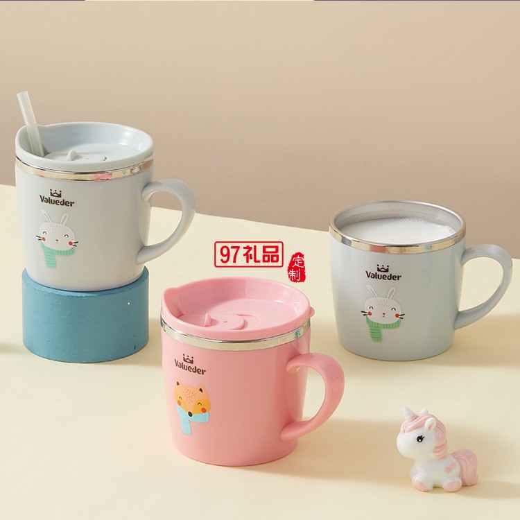 不銹鋼兒童幼兒園兒童喝水杯子單耳滑蓋吸管杯禮品杯子定制