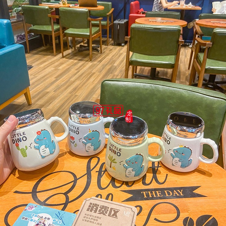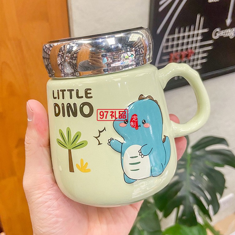 可愛卡通恐龍動(dòng)物陶瓷杯子密封蓋鏡面?zhèn)€性兒童馬克杯