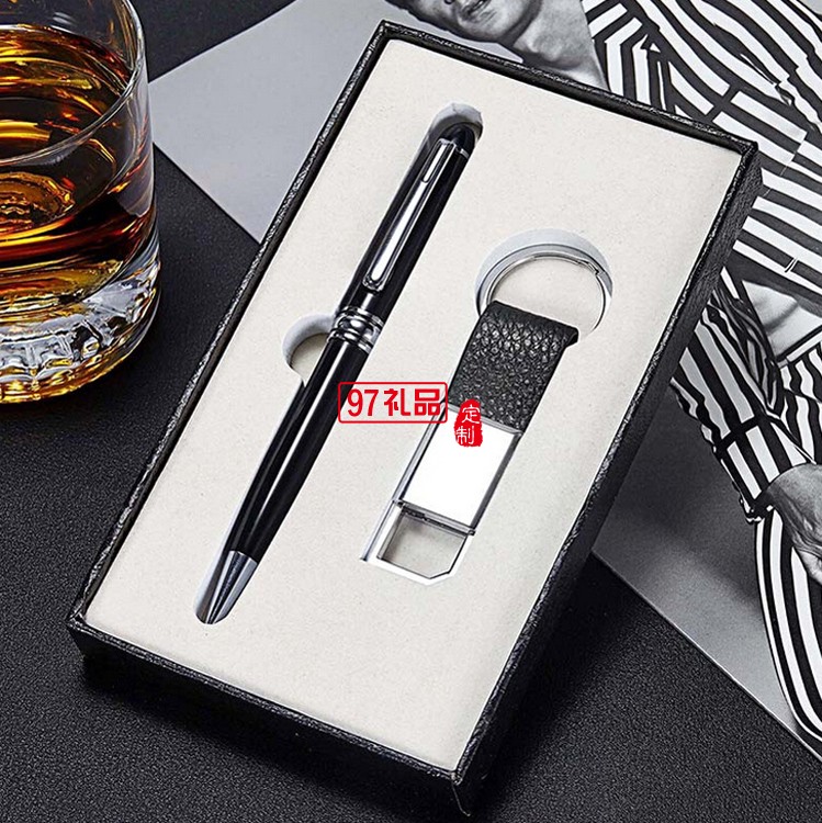 高檔簽字筆廣告鑰匙扣二件套商務(wù)套裝