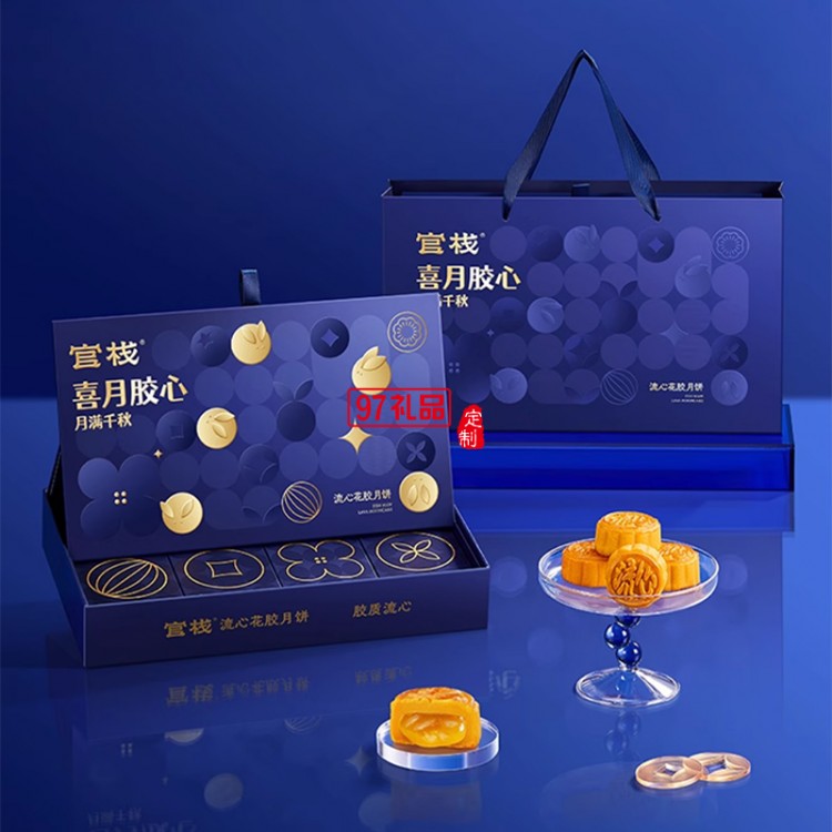 官棧月餅禮盒廣式黑松露流心奶黃花膠月餅中秋節(jié)公司