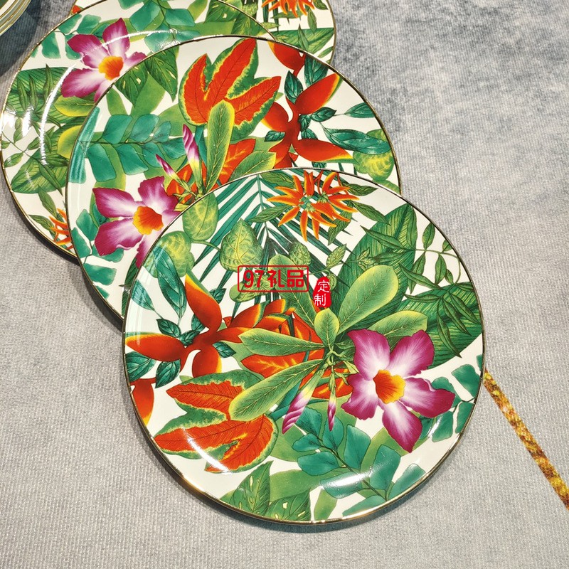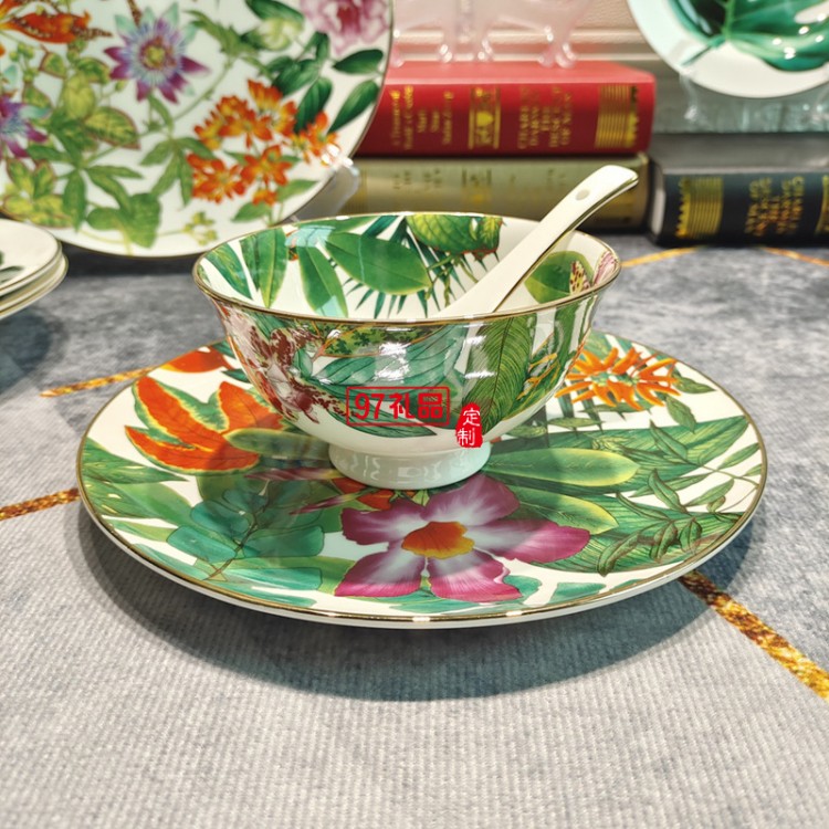 HERME愛(ài)馬歐式熱帶雨林系列36頭骨瓷餐具套裝禮盒描金中西式骨瓷