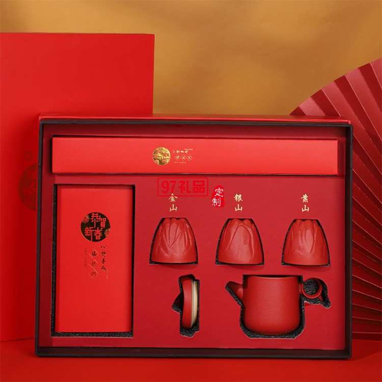 新款功夫茶具一壺三杯小套組觀山描金茶具套裝 可定制logo
