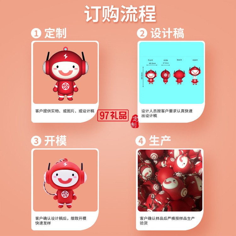 定制流程:選中商品提出定制需求,免費(fèi)策劃設(shè)計(jì),確認(rèn)樣品下單, 簽署合同支付定金,支付余額收貨,售后啟動(dòng),免費(fèi)熱線:400-0197-908