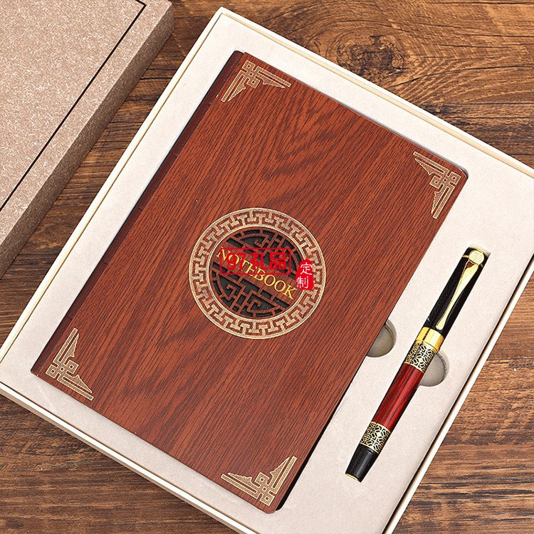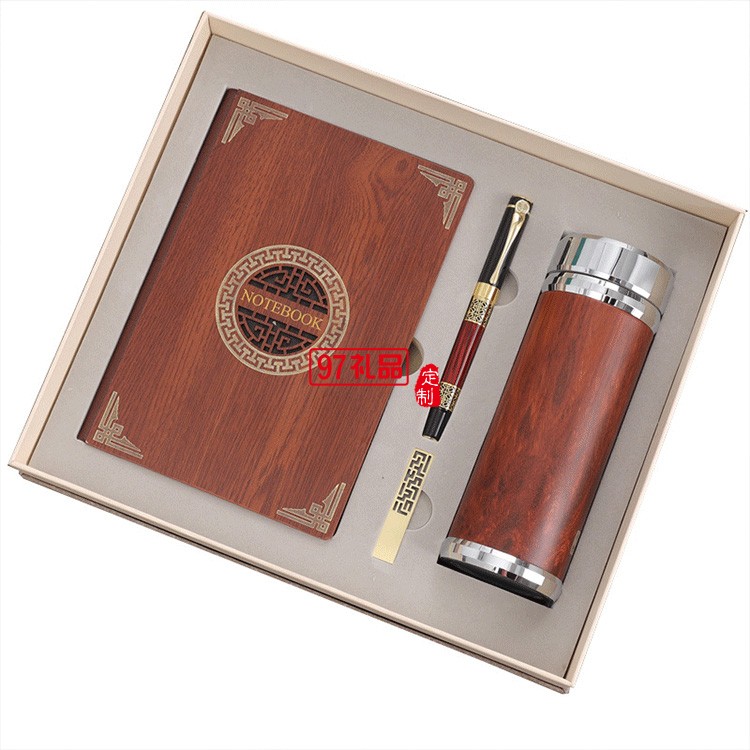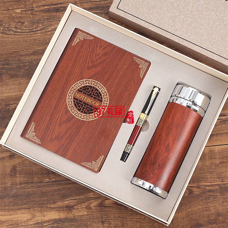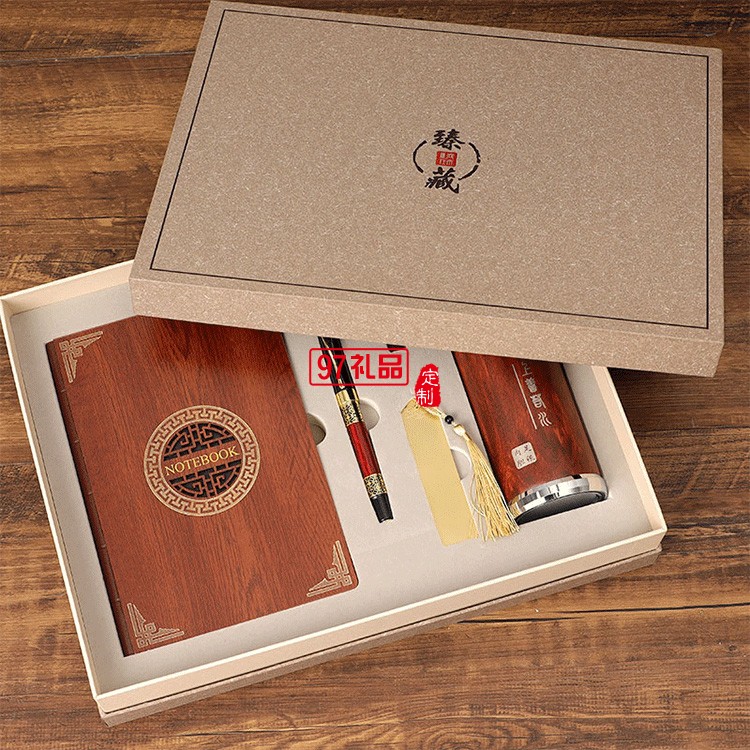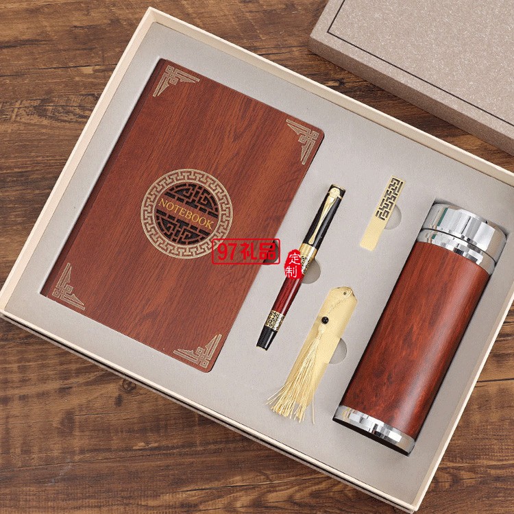 保溫杯筆記本套裝中國風(fēng)復(fù)古金屬書簽紅木筆禮品印logo