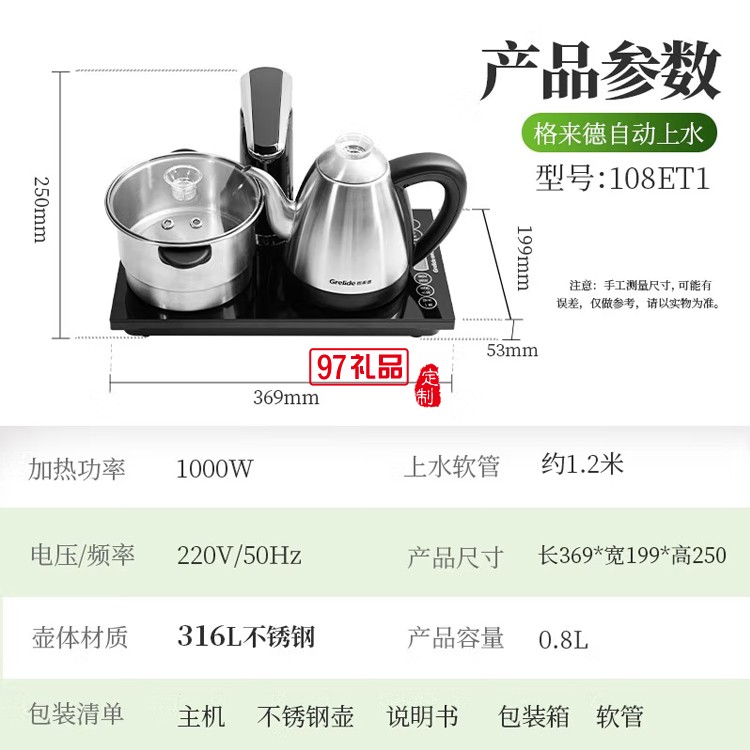 格來德電熱水壺?zé)畨?16L不銹鋼電水壺108ET1定制公司廣告禮品