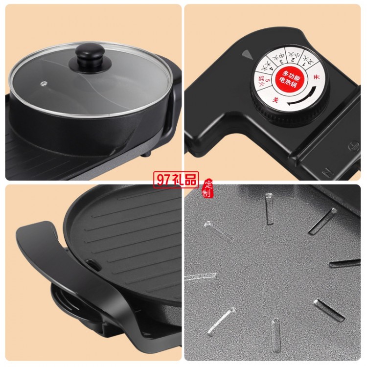 紅雙喜烤涮一體鍋涮烤鴛鴦電火鍋燒烤一體鍋送客戶禮品員工福利