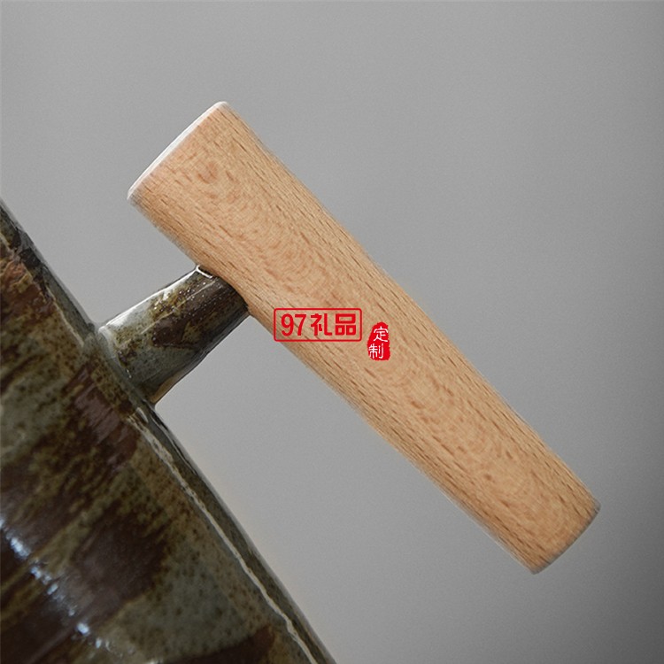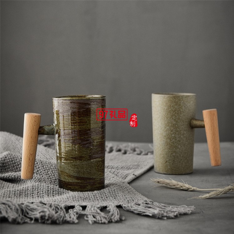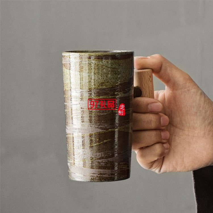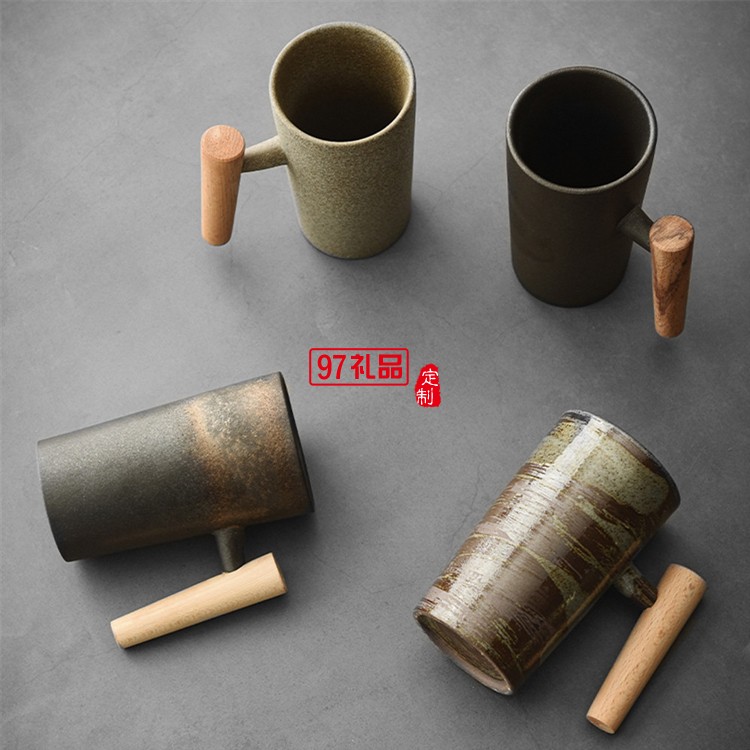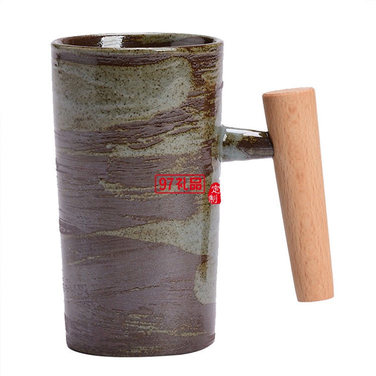 創(chuàng)意日式咖啡杯手工粗陶復(fù)古木柄馬克杯家用陶瓷茶杯子辦公室水杯
