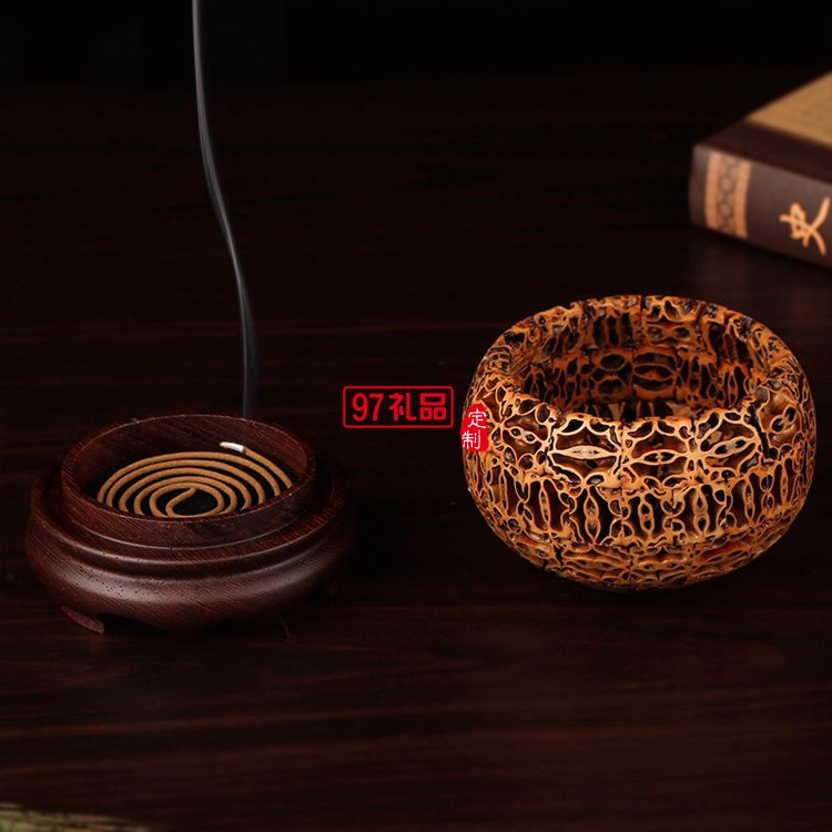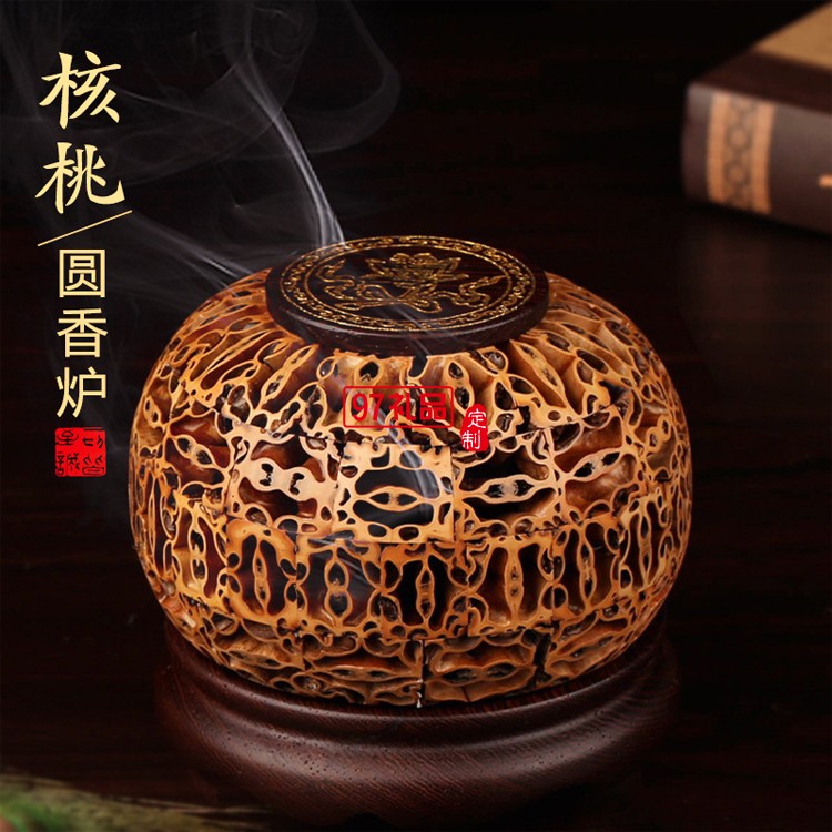 核桃盤香爐紅木創(chuàng)意禮品定制木質(zhì)工藝品