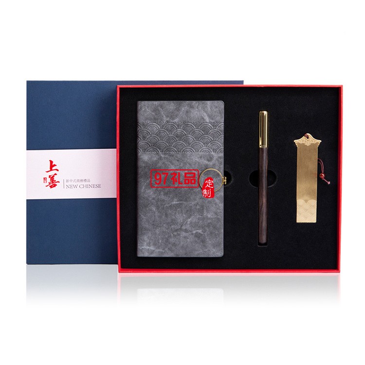 企業(yè)商務(wù)禮品黃銅書(shū)簽紅木筆記事本套裝