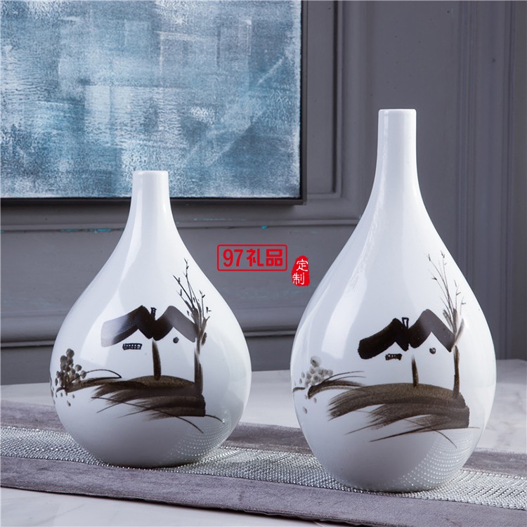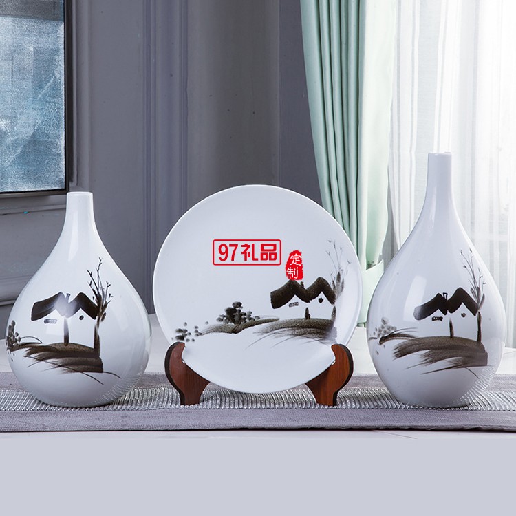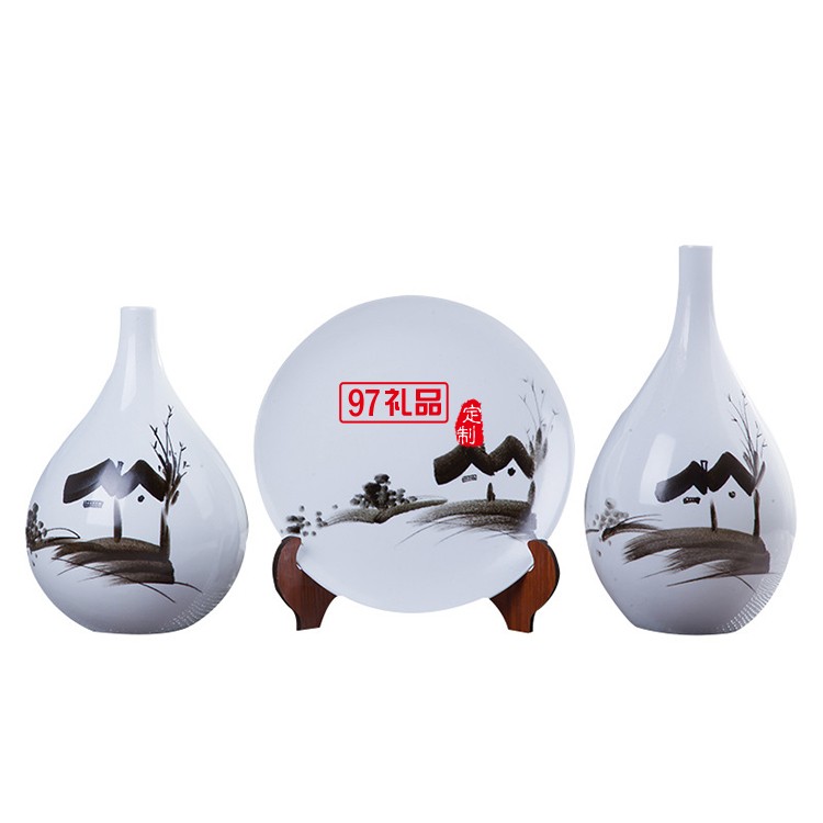 手繪鄉(xiāng)情陶瓷擺件 花瓶含托盤架 家居賓館酒店大廳開張開業(yè)展會(huì)用