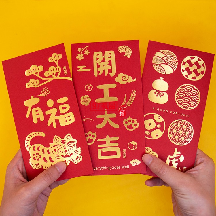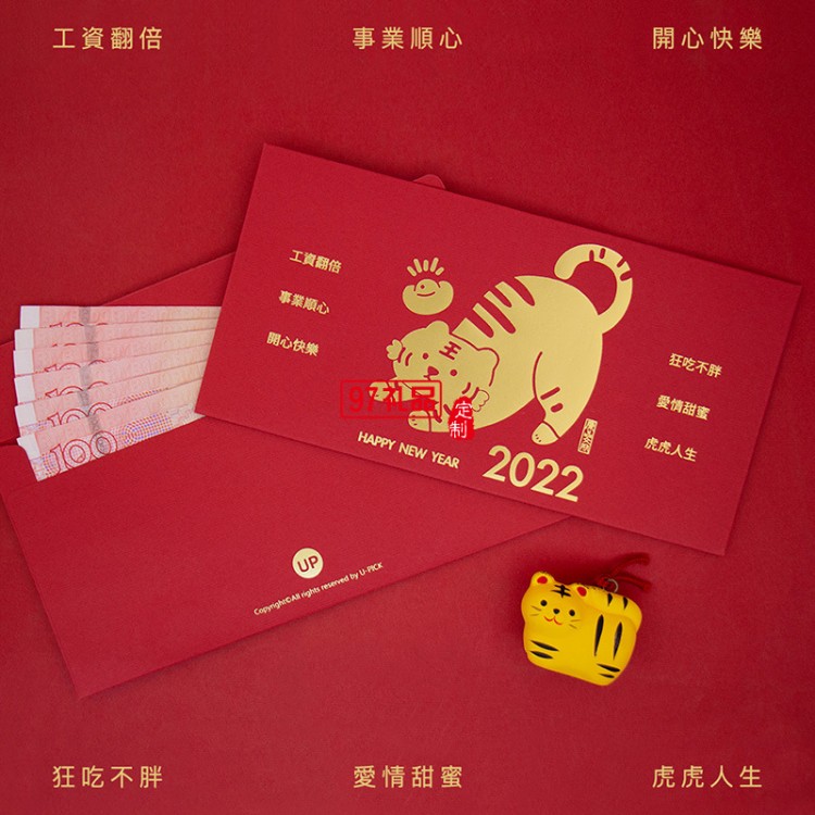 虎年新年創(chuàng)意燙金千元紅包利事封可定制(6個裝)