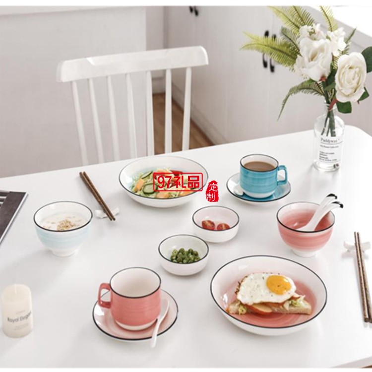 漸變色手繪餐具陶瓷碗陶瓷勺子隨手禮女神節(jié)禮品銀行禮品
