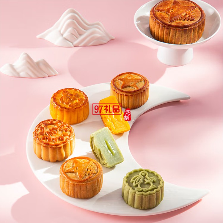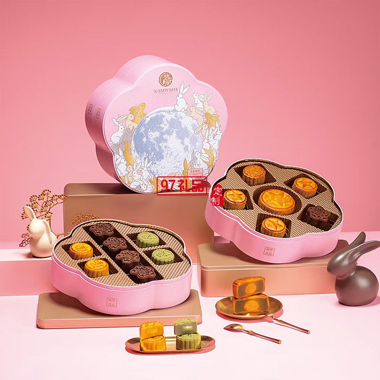 錦華月餅禮盒玉兔攬?jiān)?60g雙層鐵盒廣式港式月餅中秋節(jié)
