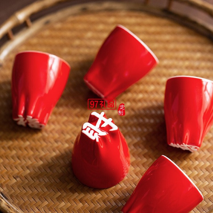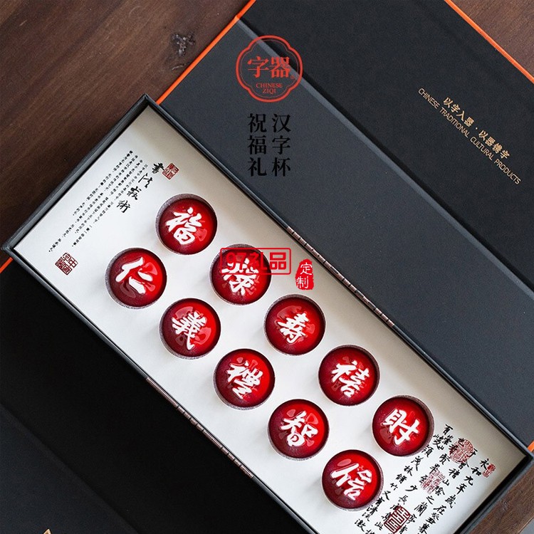 漢字杯十全十美陶瓷杯禮盒福祿壽禧財(cái)仁義禮智信帶字杯子
