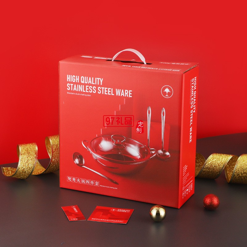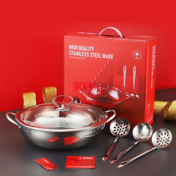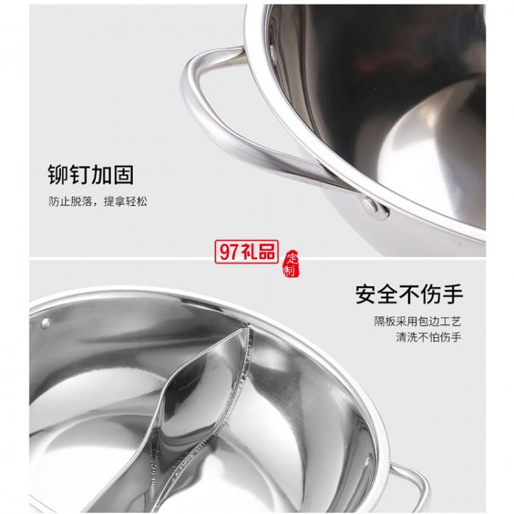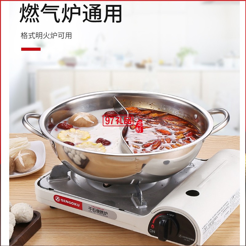 加厚不銹鋼鴛鴦火鍋套裝電磁爐二味火鍋鍋涮涮鍋帶勺商務(wù)禮品鍋具