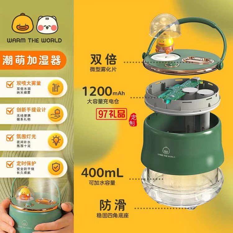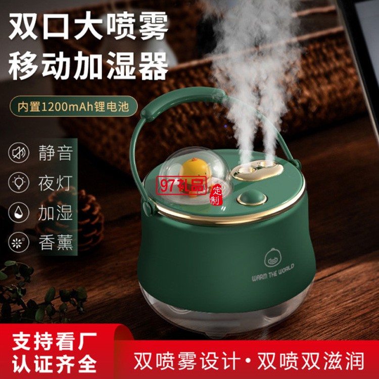 加濕器充電補(bǔ)水無(wú)線移動(dòng)雙噴加濕器小夜燈加濕器定制公司廣告禮品