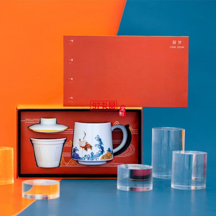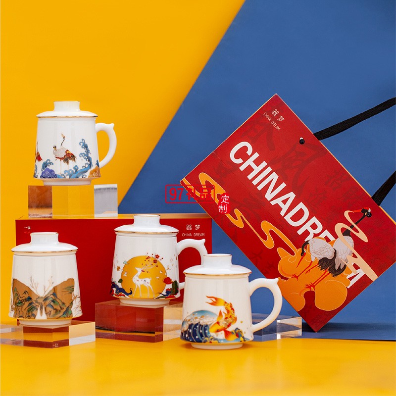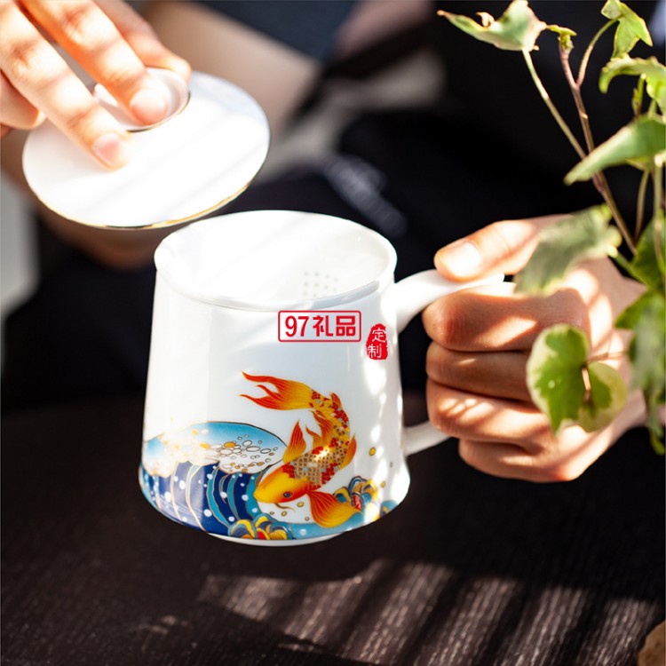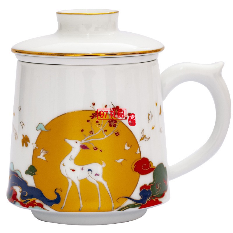 景德鎮(zhèn)陶瓷大茶杯帶蓋過濾水杯琺瑯彩福祿