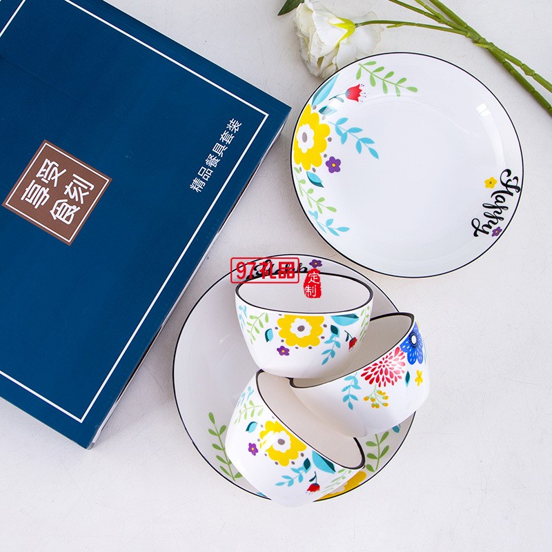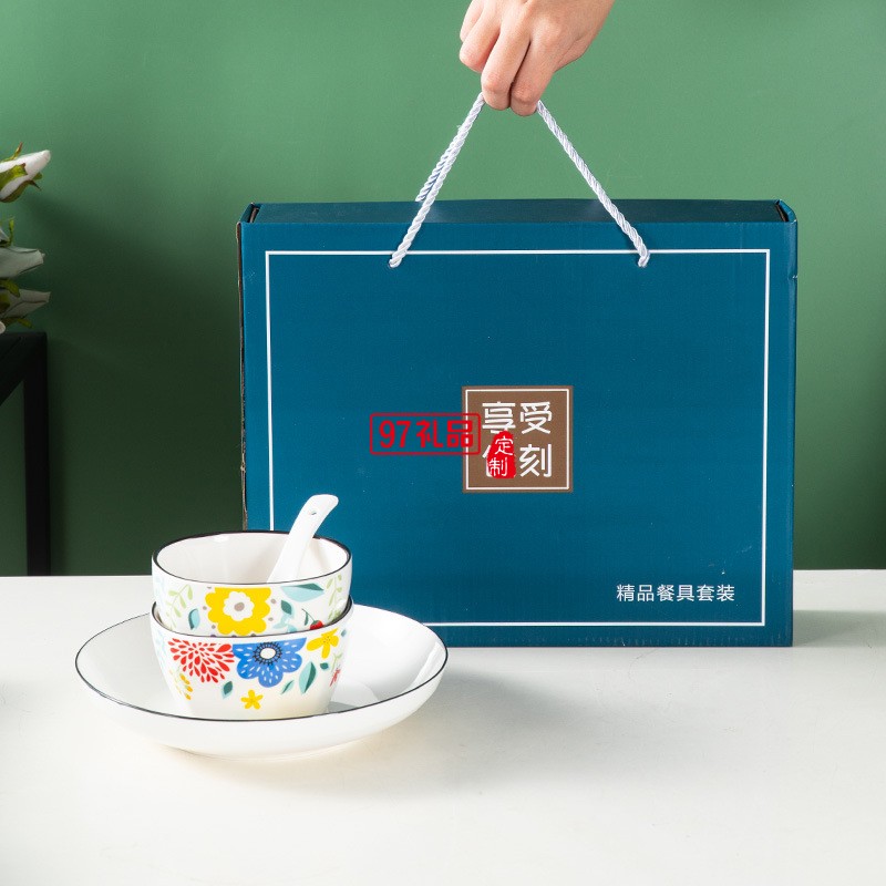 陶瓷餐具套裝小配頭禮盒裝 碗勺碗筷套裝禮品碗定制LOGO活動小禮品