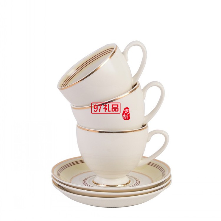 創(chuàng)意三件套線條金邊手工描金歐式骨瓷咖啡杯碟套裝花茶杯可加LOGO